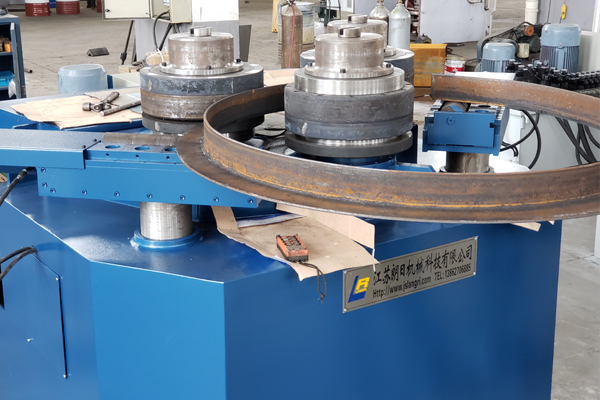 型材彎曲機是一種專用于卷彎角鋼、槽鋼、工字鋼、扁鋼、方鋼、圓鋼等各種異型鋼材的高效加工設備,可一次上料完成卷形、校正工序。型材彎曲機結構為弧線下調式結構,上輥軸固定,兩下輥軸圍繞一中軸相對于上輥軸分別作弧線升降運動,其功能主要是預彎型材的端部和使型材彎曲變形,同時兩下輥軸也為主傳動軸,由液壓馬達驅動,使彎曲變形的型材卷制成形。